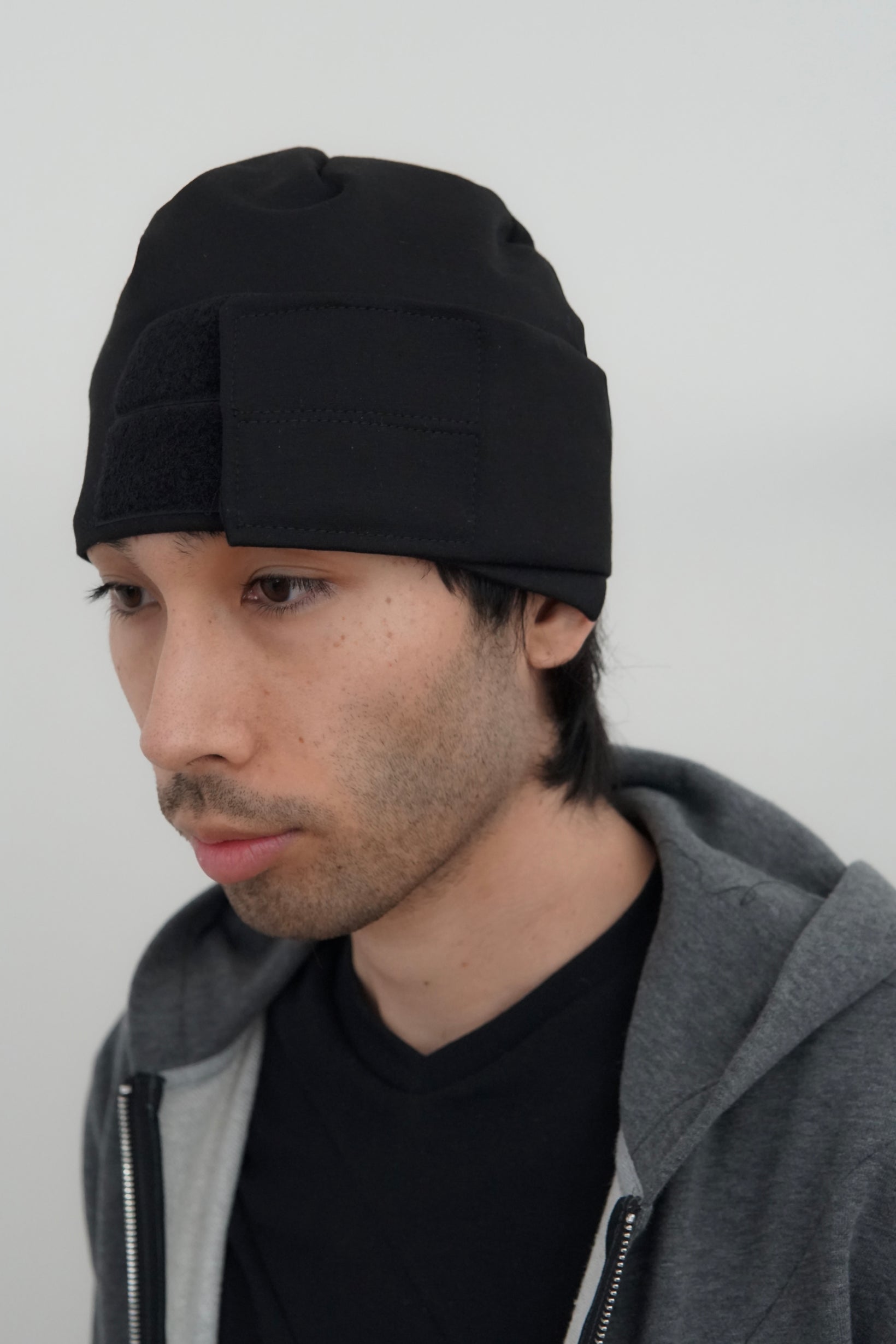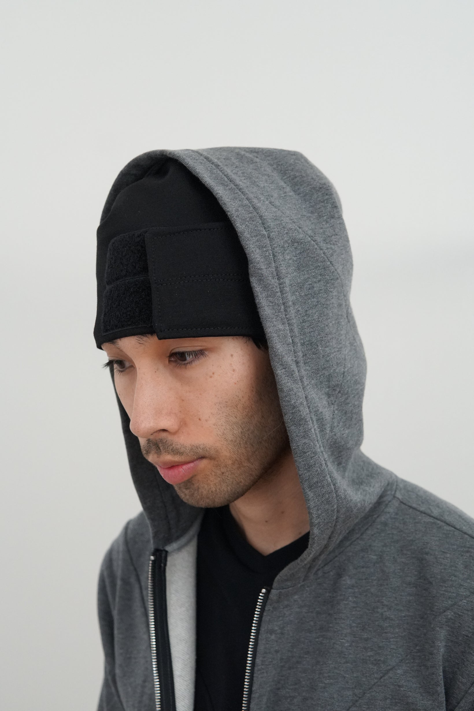 Adjustable wrap around velcro strapBlack mid-weight cotton rib, elegance, black lightweight bamboo lining