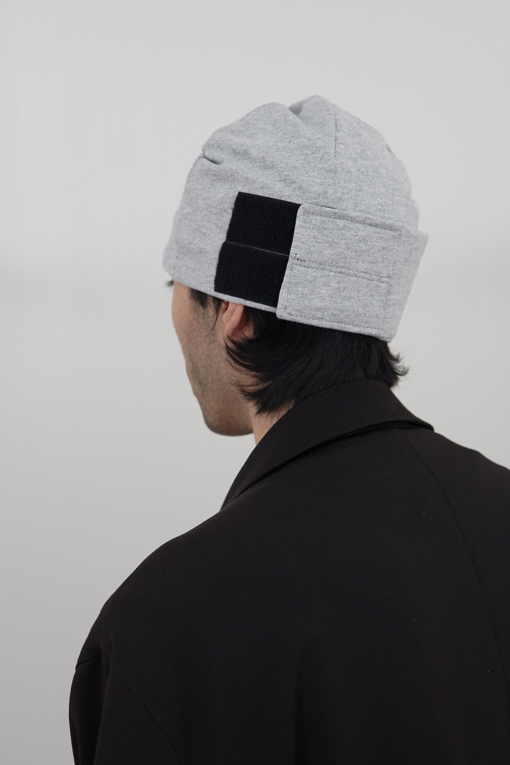 Adjustable wrap around velcro strapGrey lightweight cotton jersey, black lightweight bamboo lining