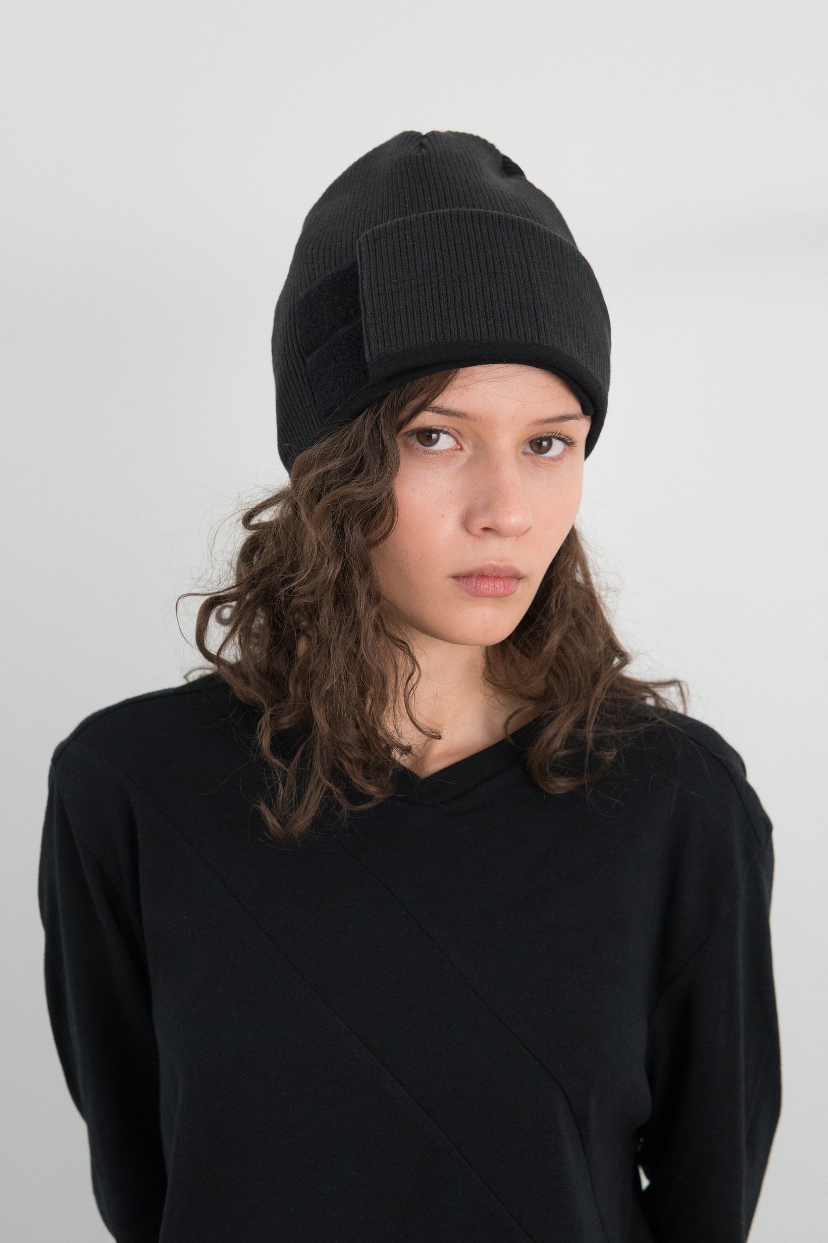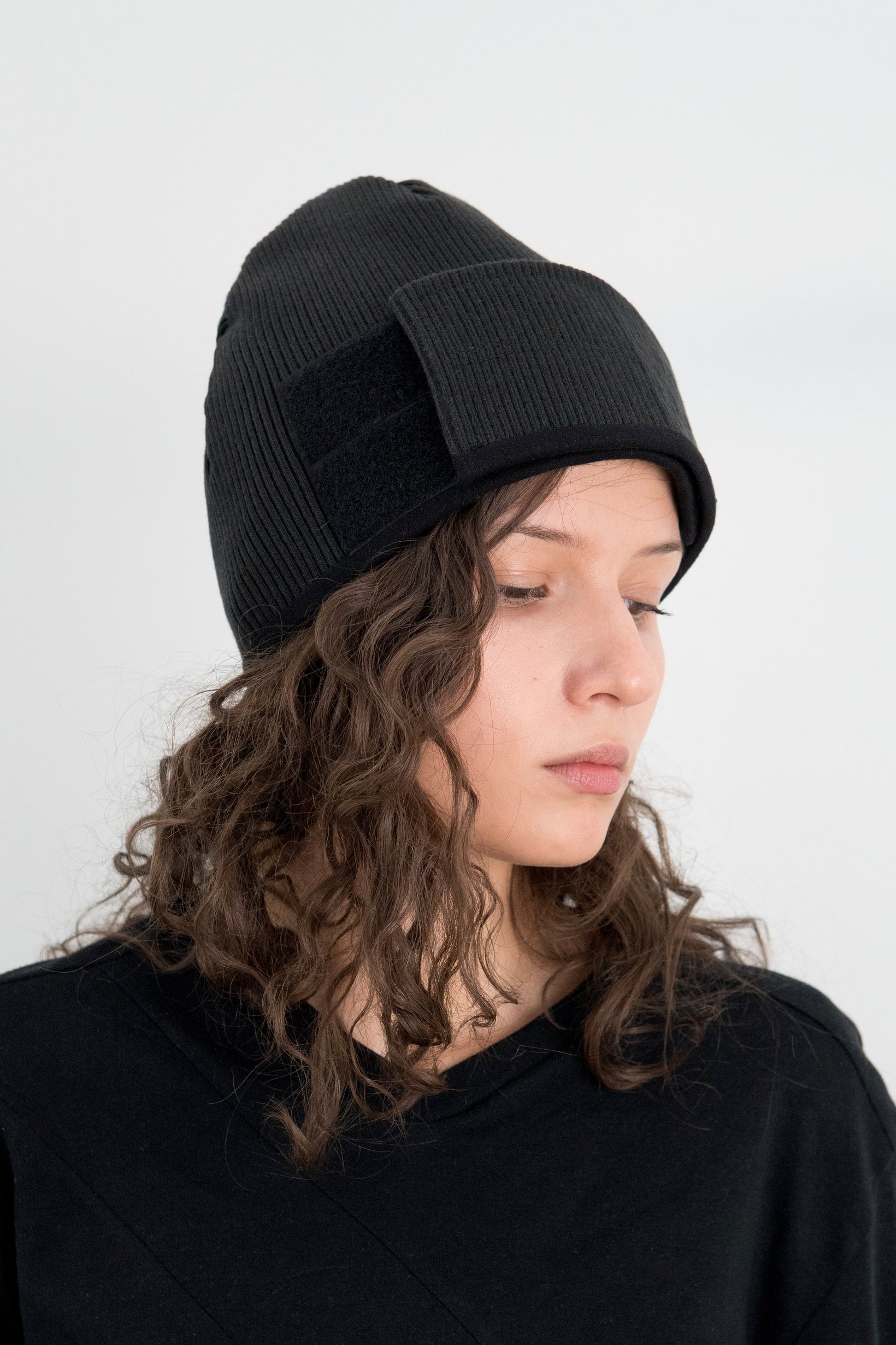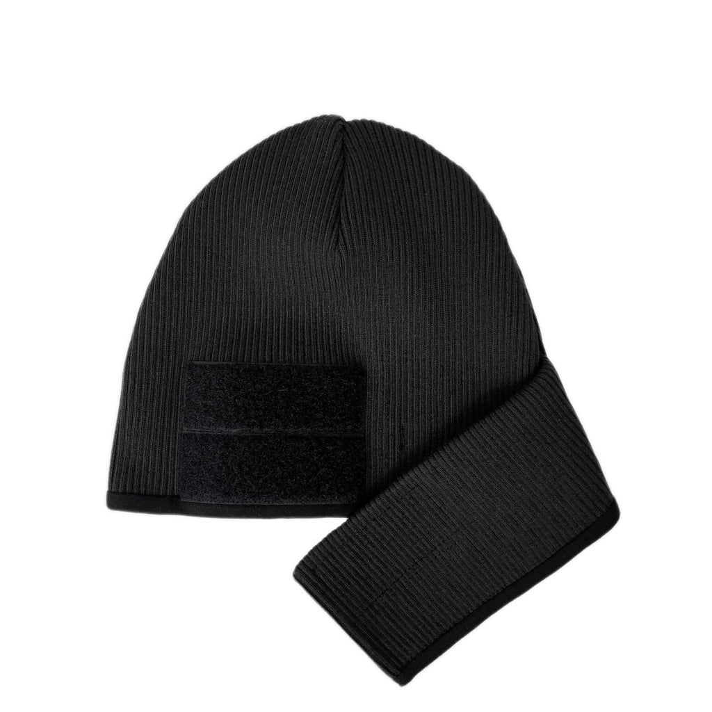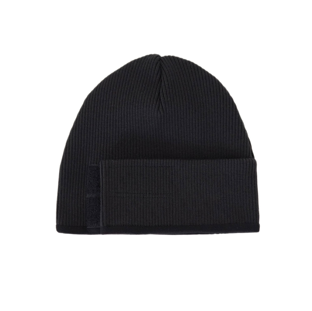 Adjustable wrap around velcro strap.Black heavyweight rib with soft black stretch jersey lining.