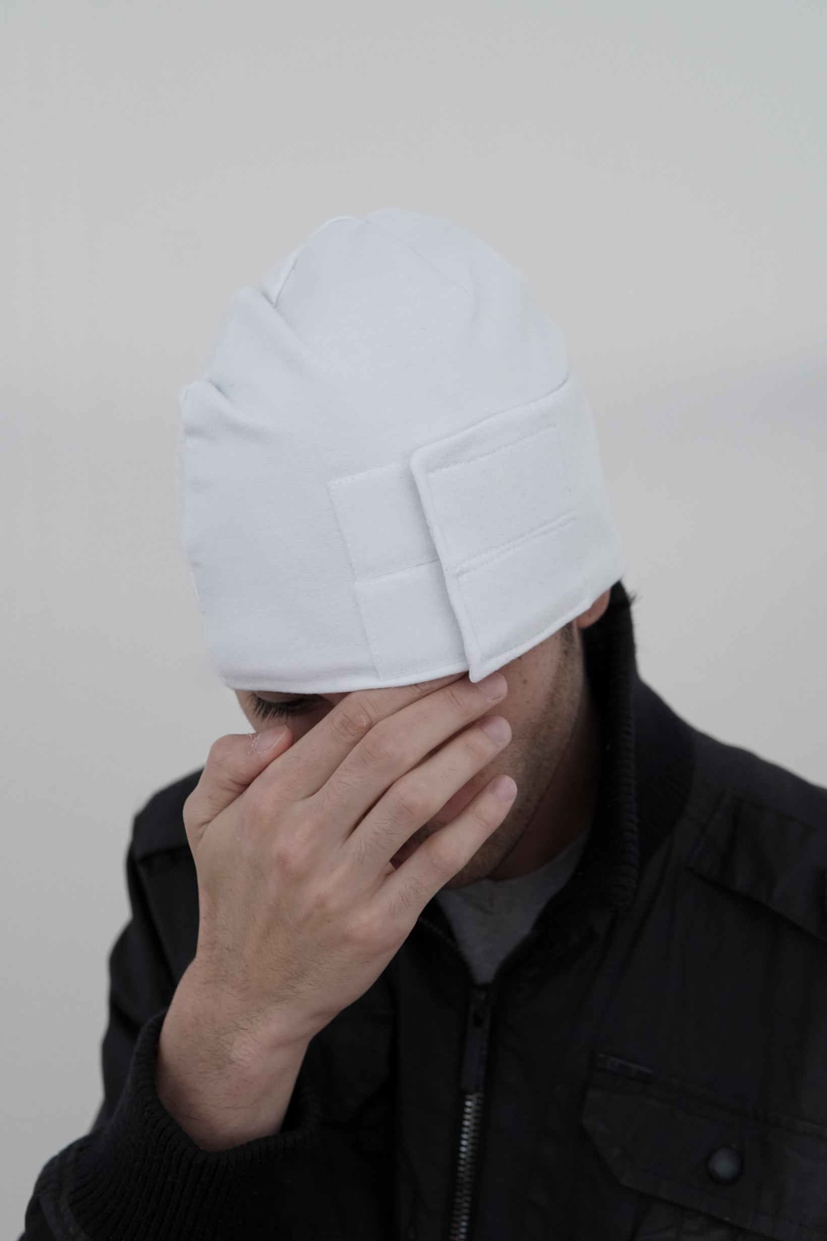 Adjustable wrap around velcro strap. Double layered lightweight rib fabric.