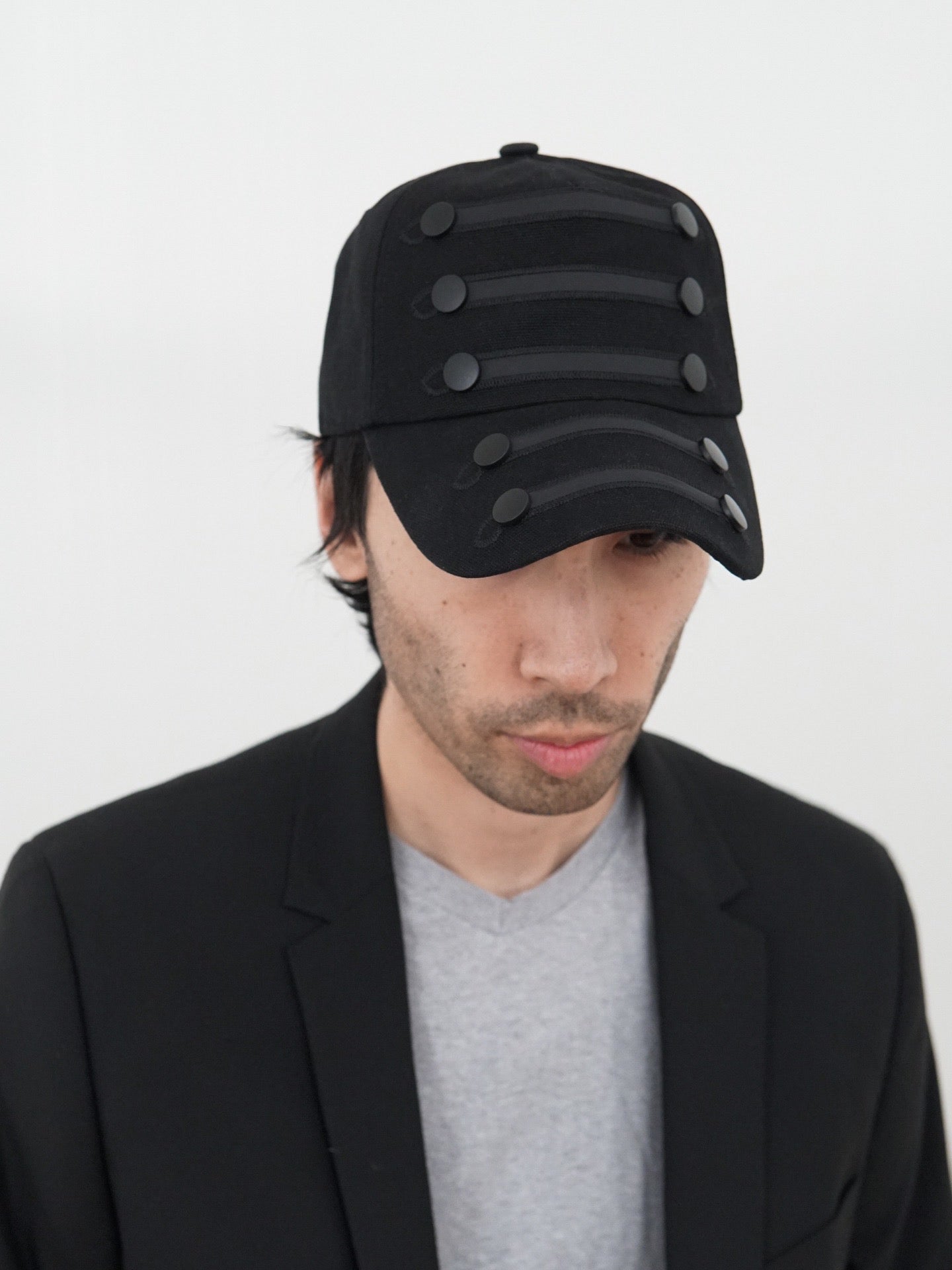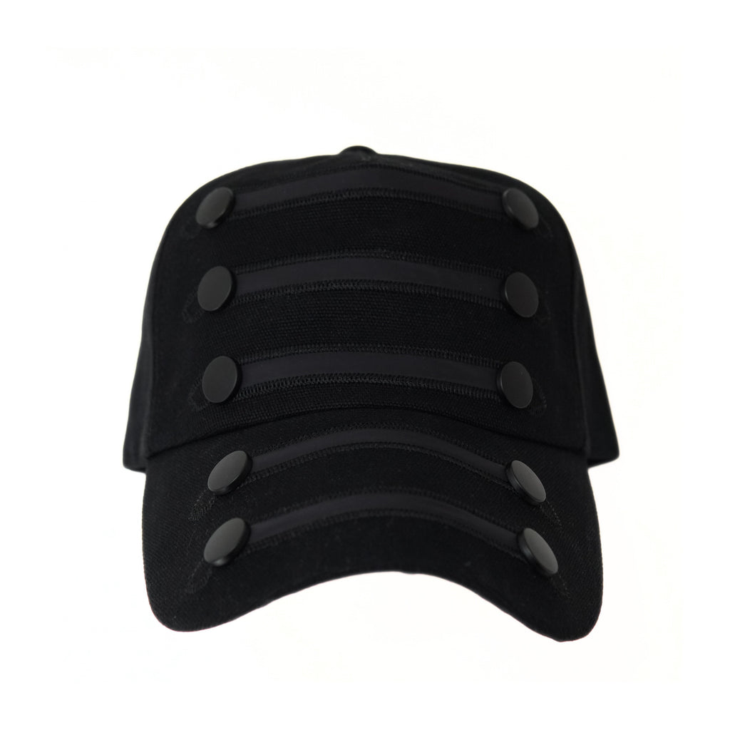 Waxed canvas, black chainstitch embroidery, shiny nylon laser cut insert, gunmetal rivets.
