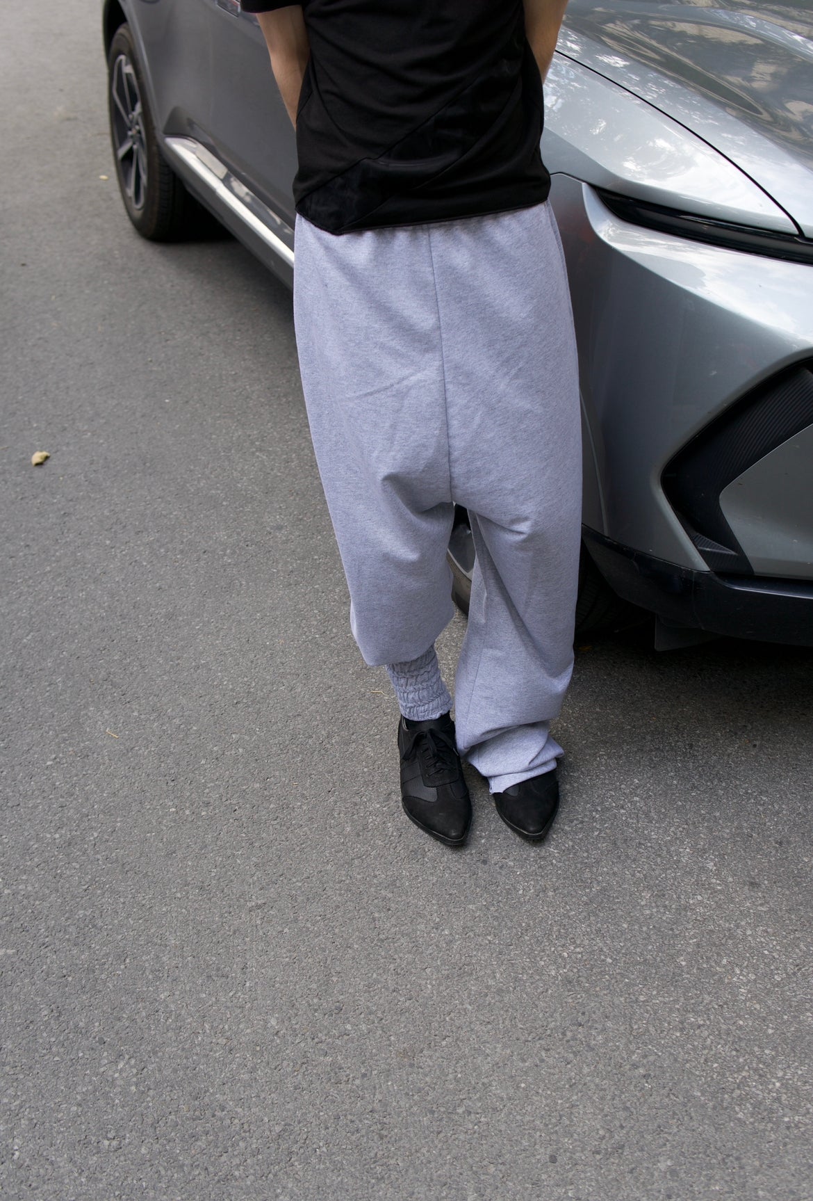Relaxed fit with drop crotch and single leg cuff. Midweight terry loop 100% cotton.